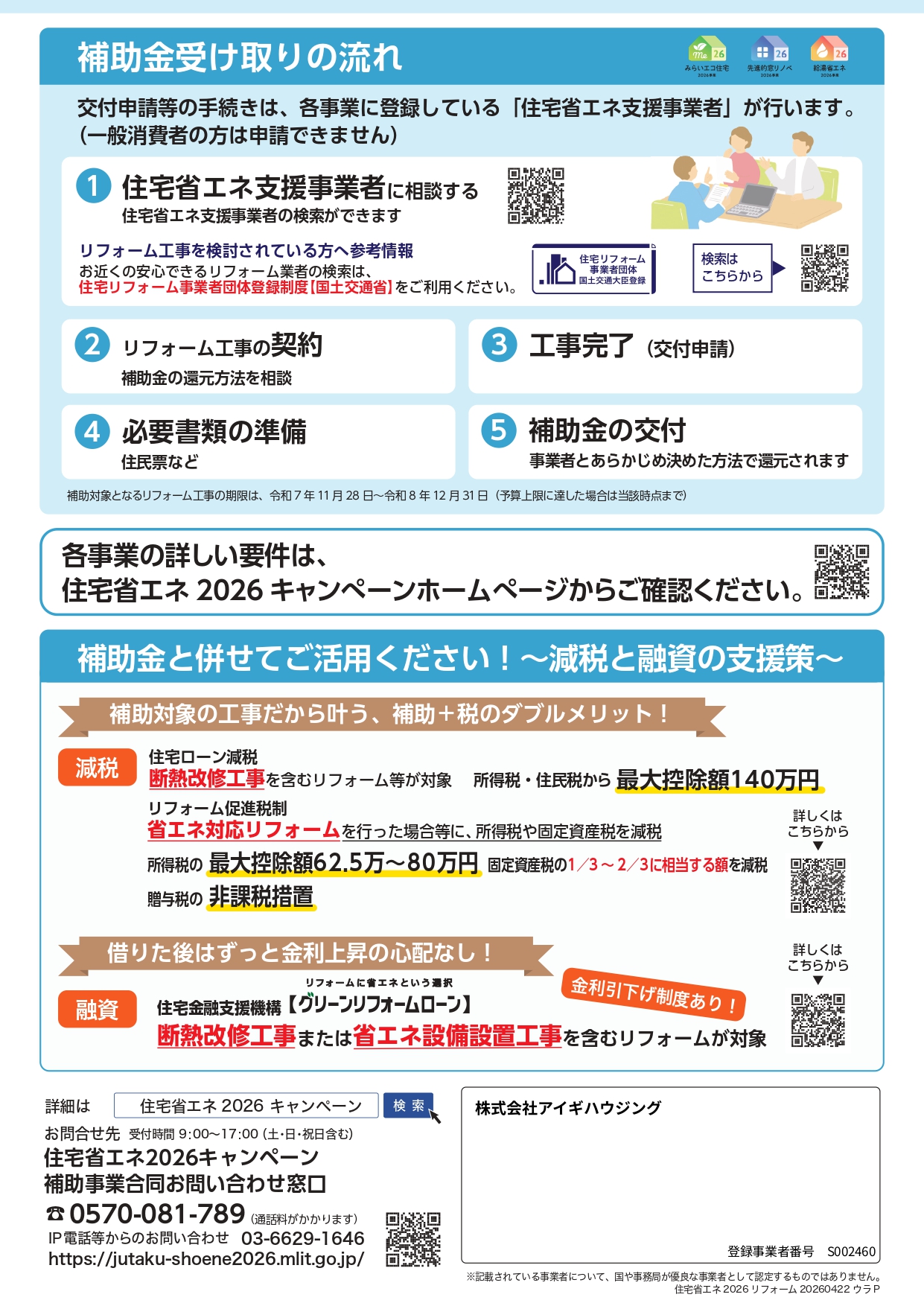 **「リフォーム向け補助事業 周知チラシ(4月23日版)」**を本ブログに添付しております。