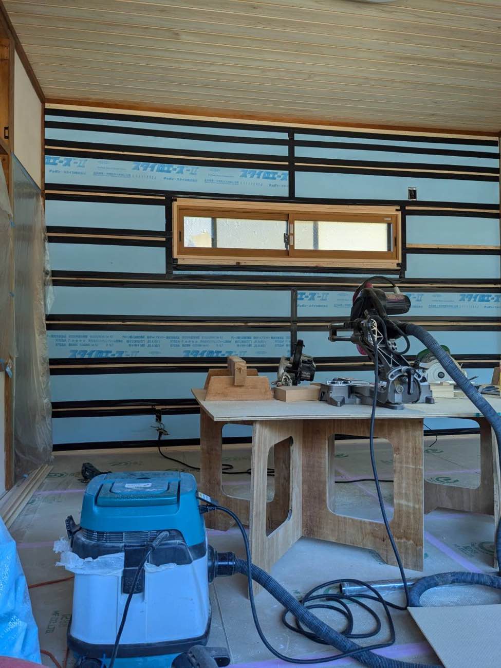 室内側に断熱材を施工する内張断熱により、壁からの冷え込み・暑さを抑え、室内の快適性が大きく向上しました。