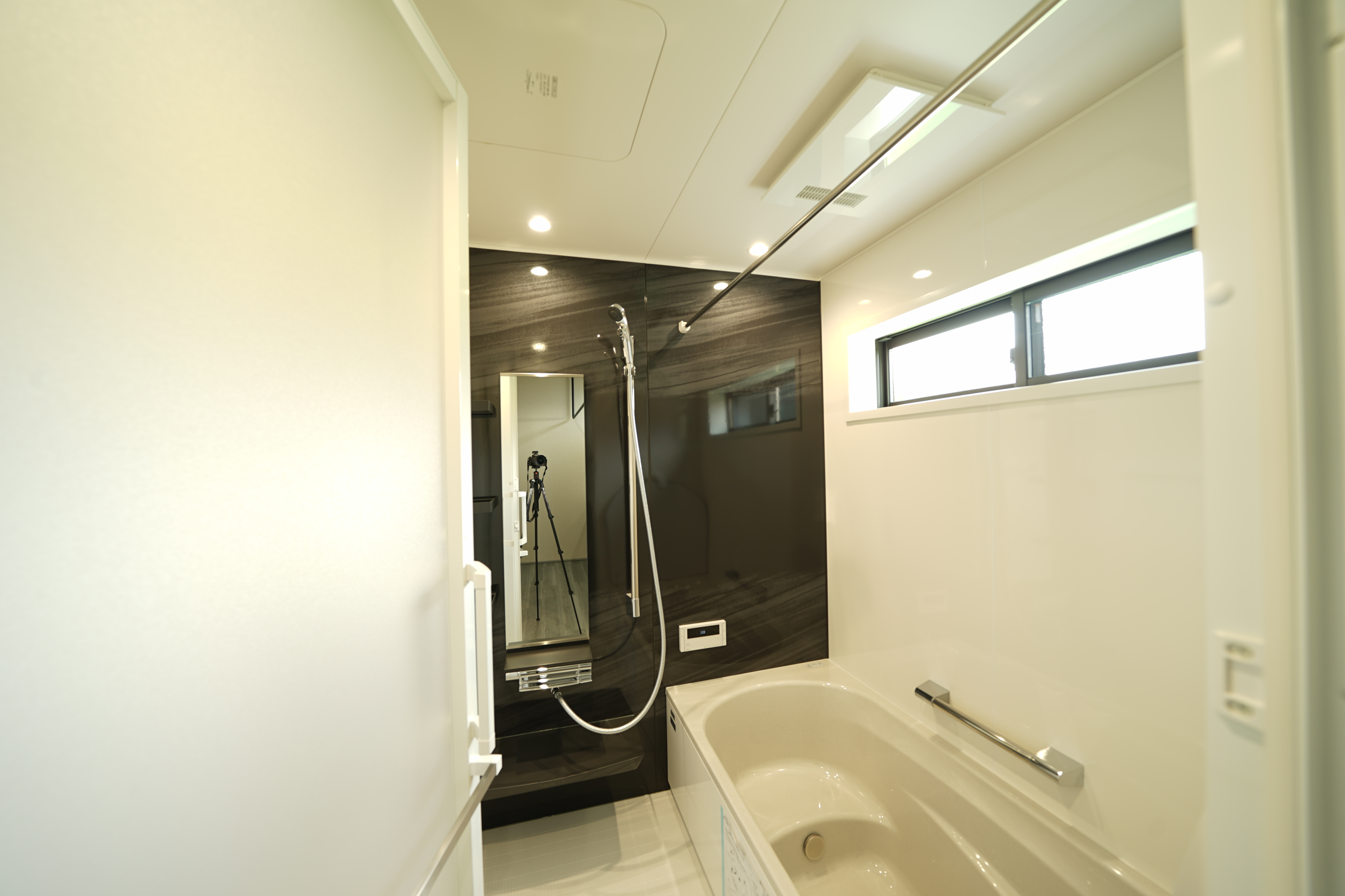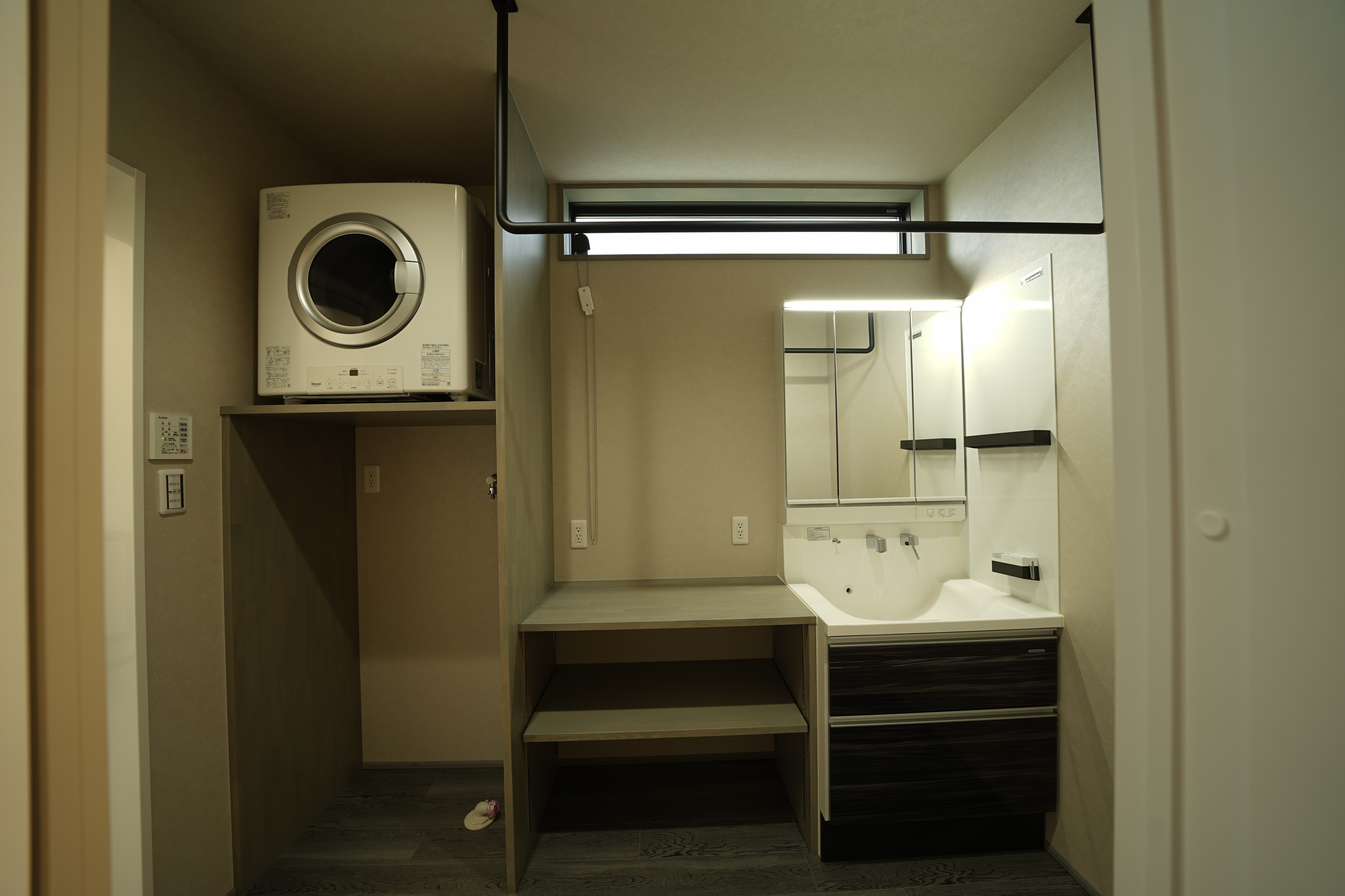 サニタリールームは、グレーやブラックの色味で統一しクールな空間に