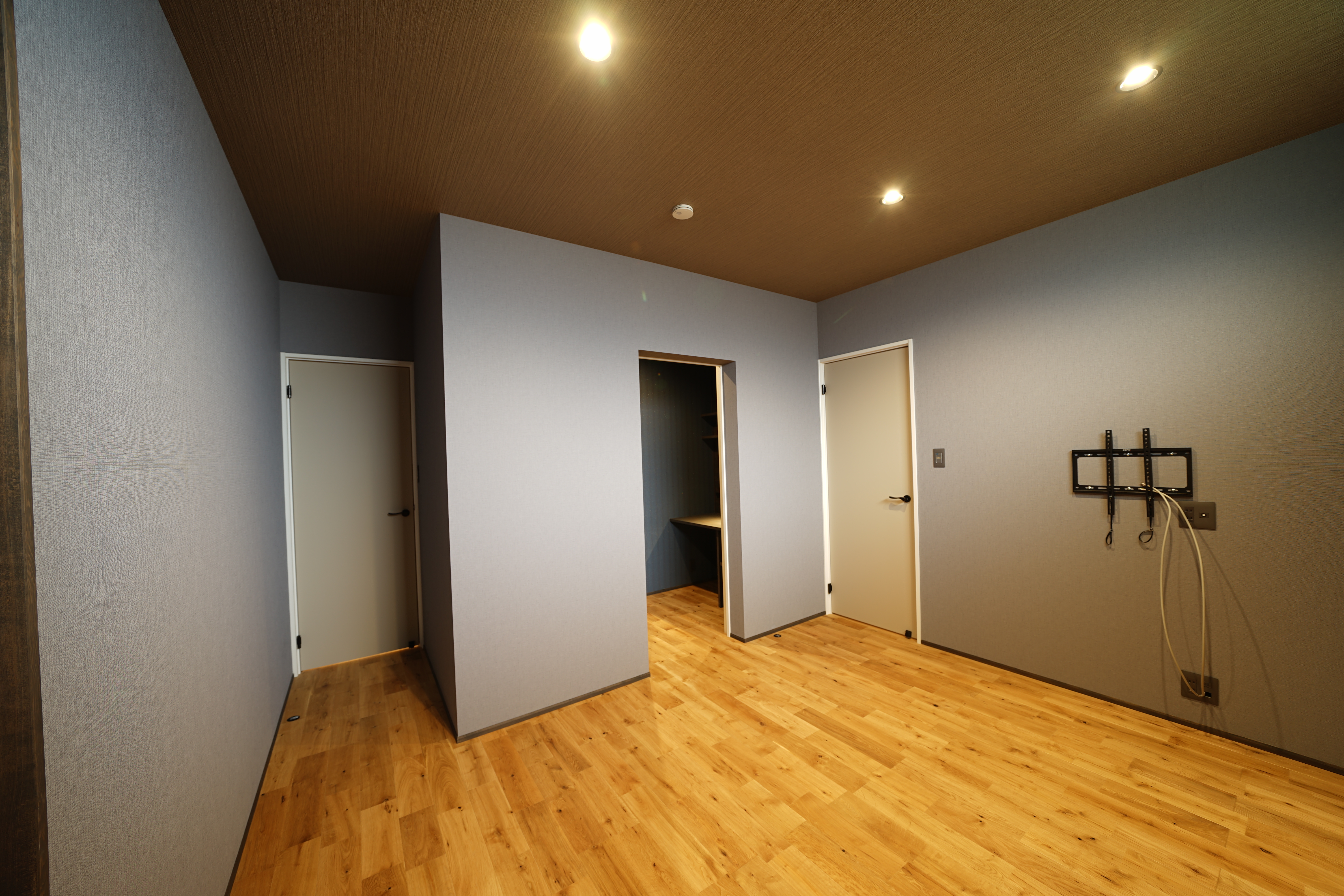 ベッドの枕元にふかし壁を設けホテルライクな空間を演出
