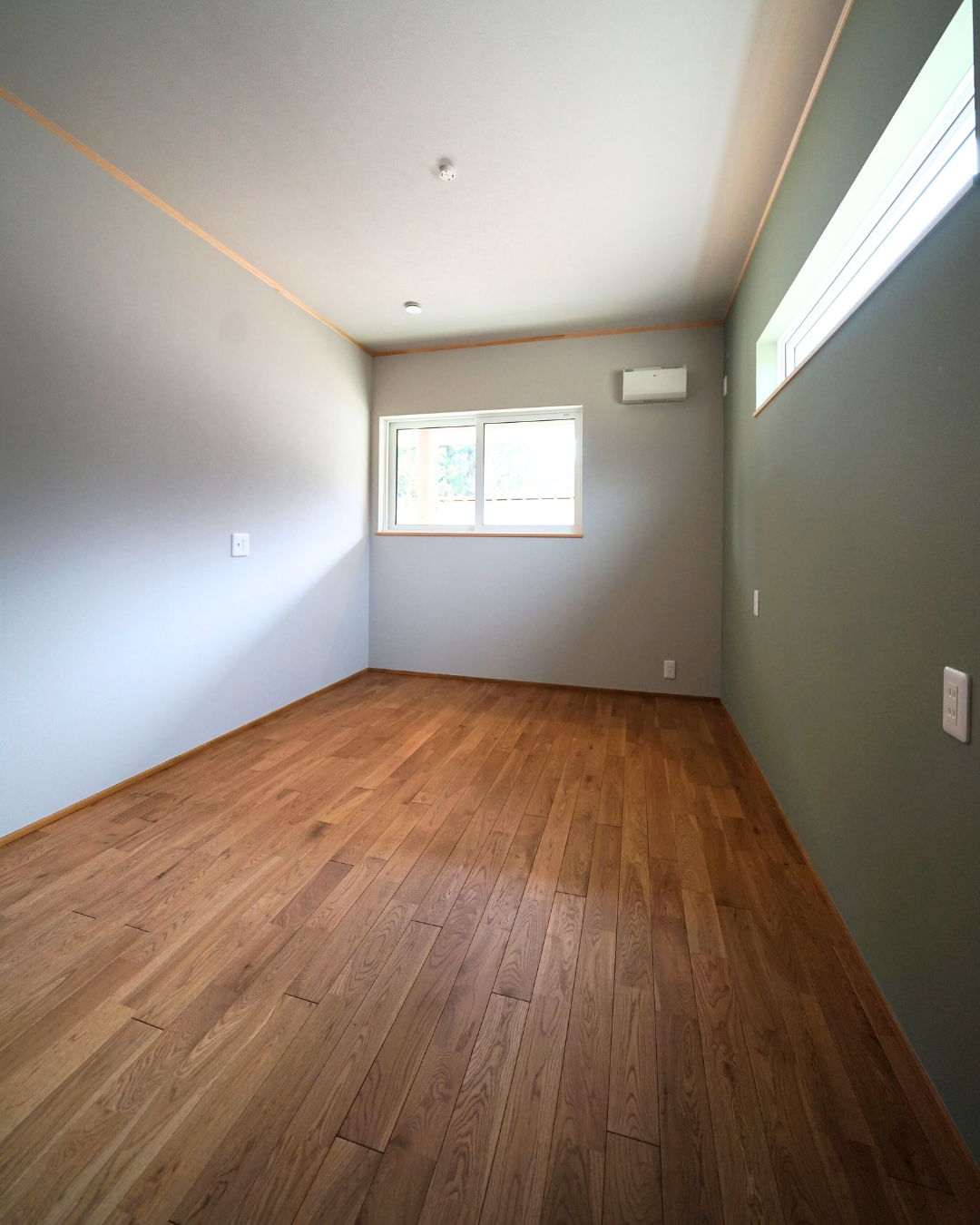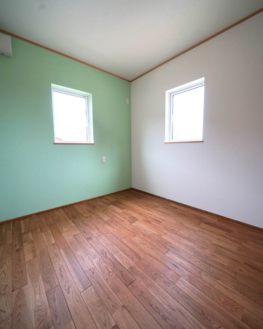 子供室:爽やかなグリーンのアクセントクロスを採用
