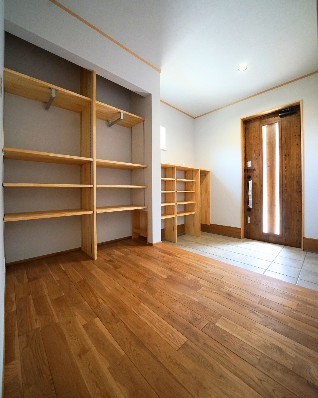 傘立てスペースやスリッパニッチなど、細部までこだわった玄関収納