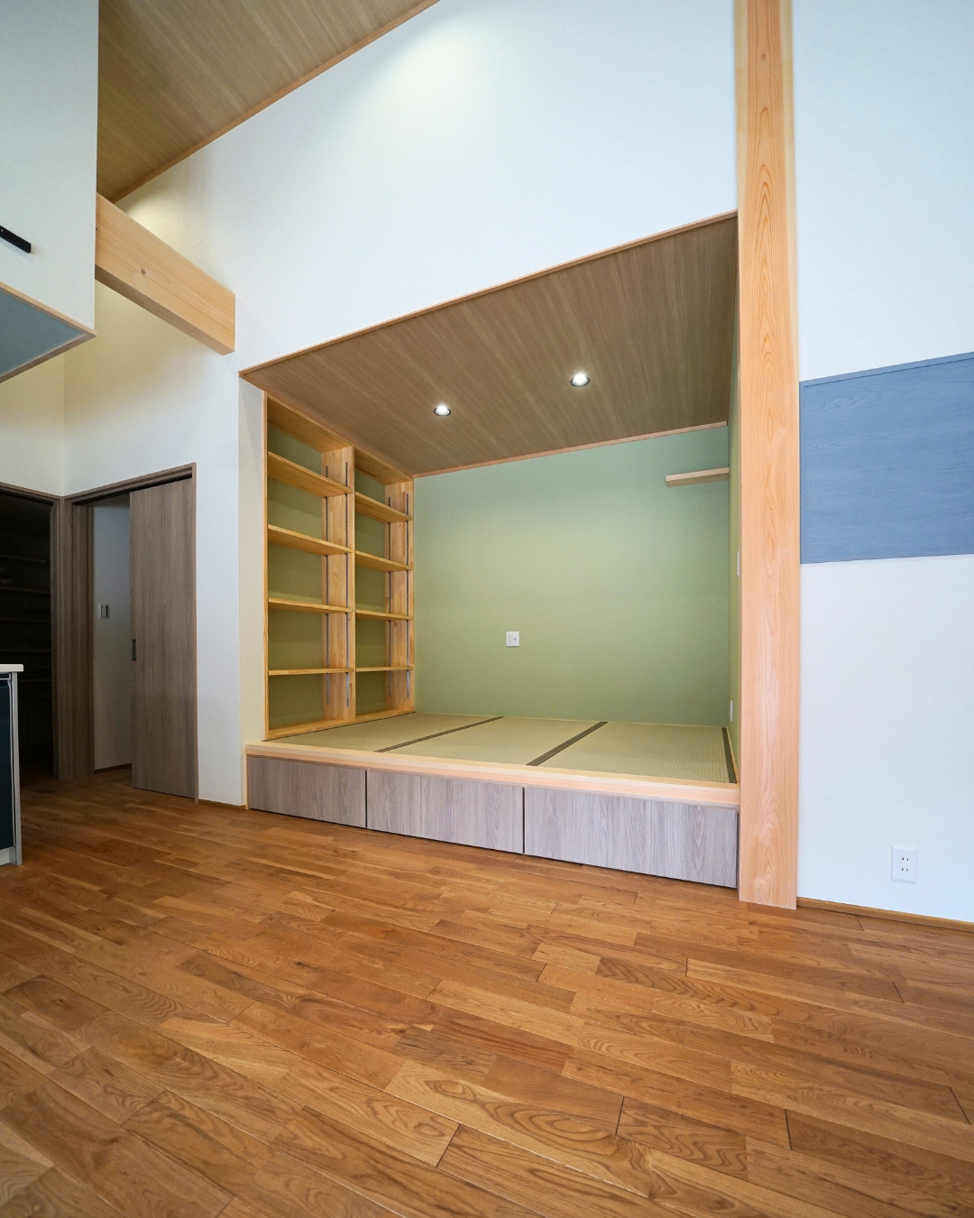 畳スペース:高さ380㎜の小上がりで、下部の引き出し部分にたっぷり収納できます