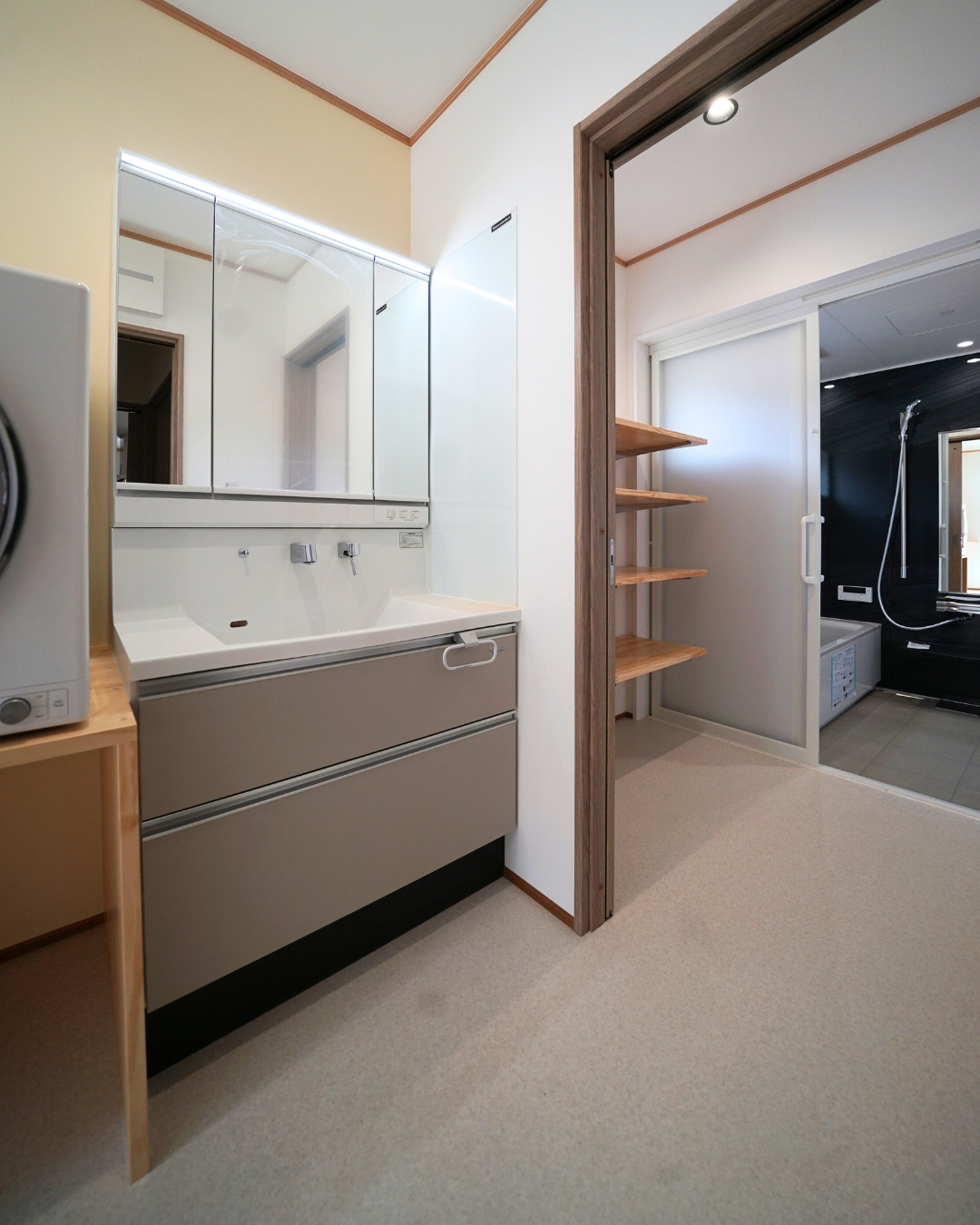 バスルーム:タカラスタンダード・リラクシアJ(浴室パネル:サンドストーンブラック 浴槽:シュガーライトグレー 洗い場:カームベージュ)