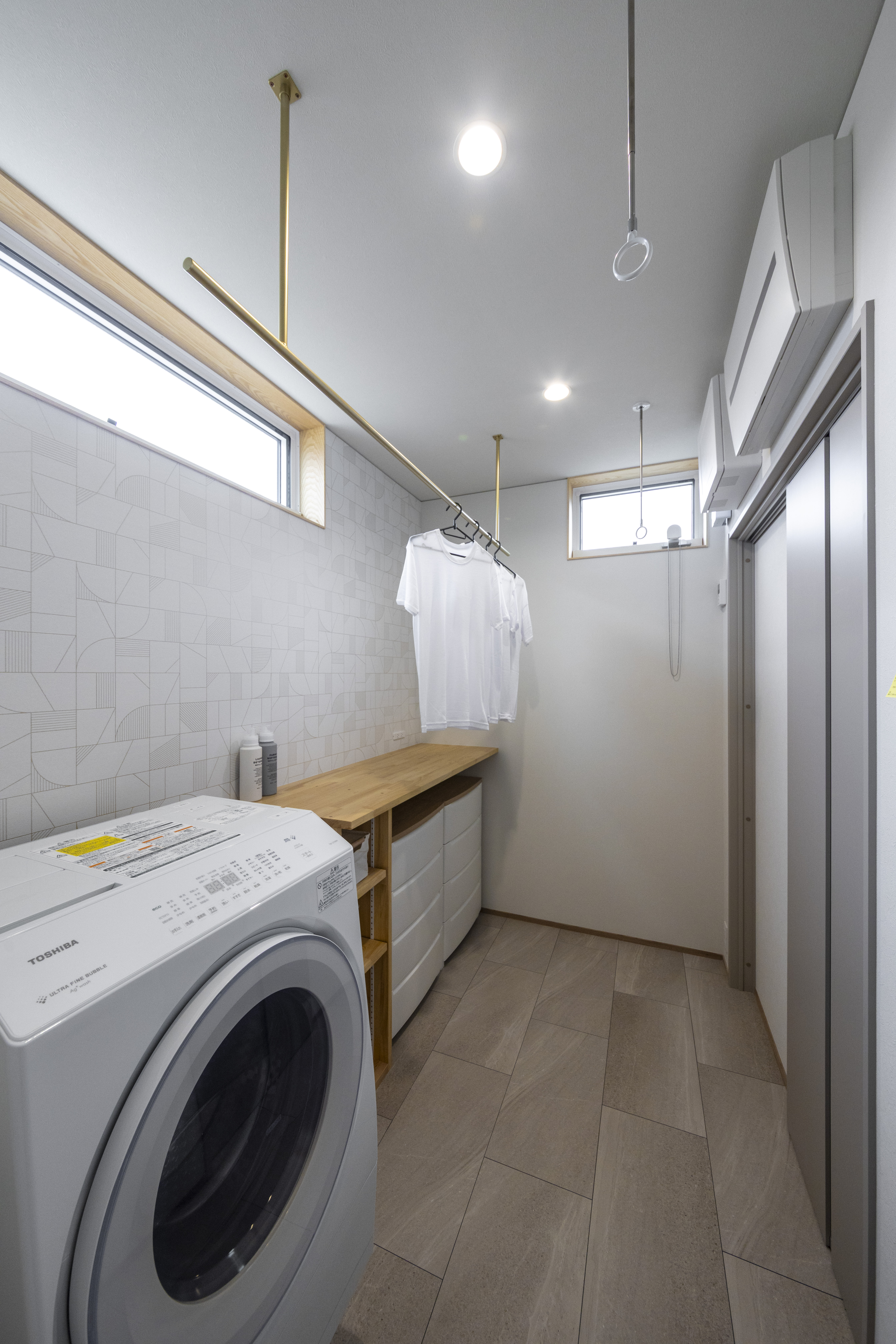 ランドリールーム横にファミリークローゼットを設けて家事楽動線に