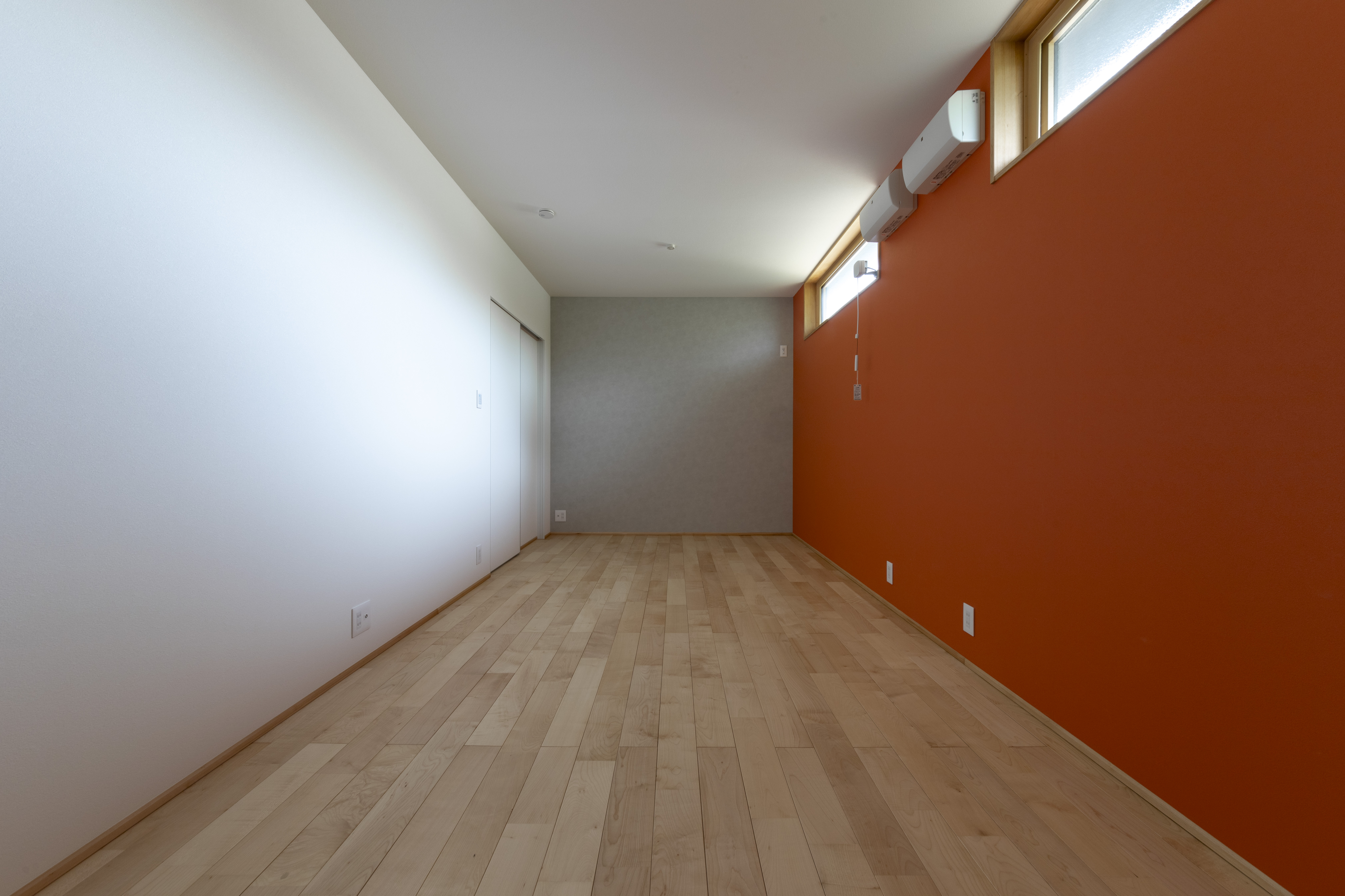 オレンジのアクセントクロスでエネルギーいっぱいの子供部屋に