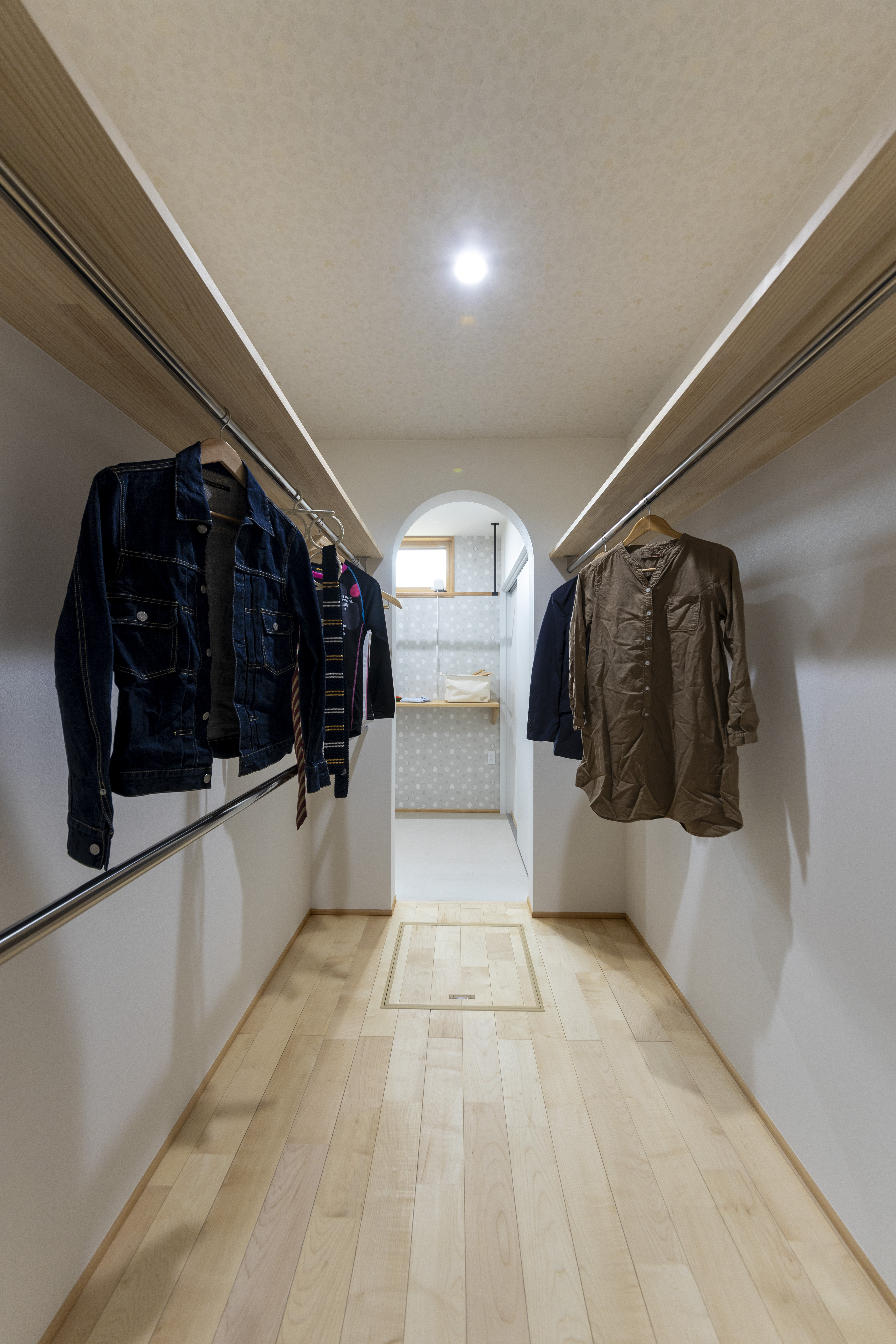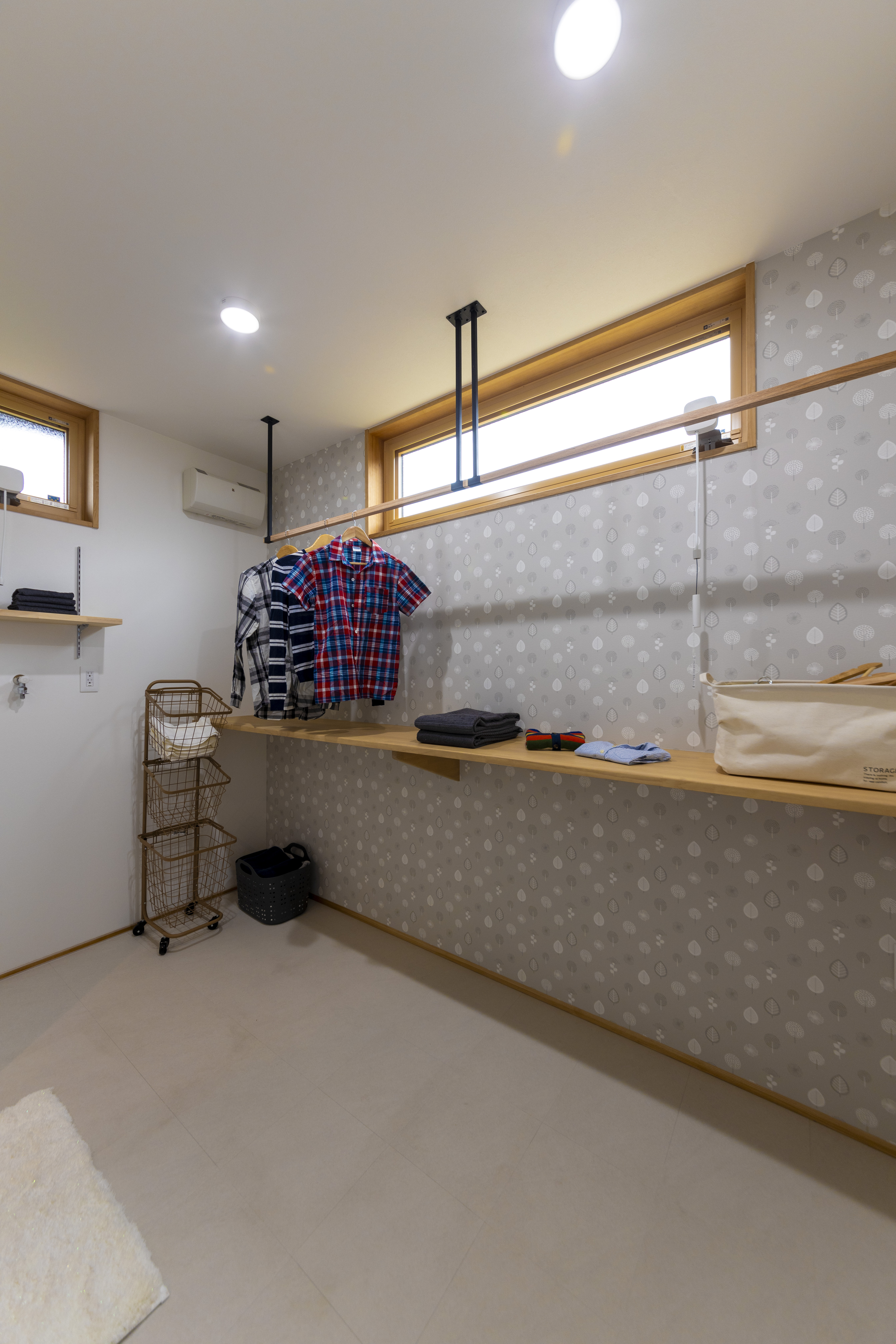 ランドリールームからつながるファミリークローゼットで家事動線がスムーズに