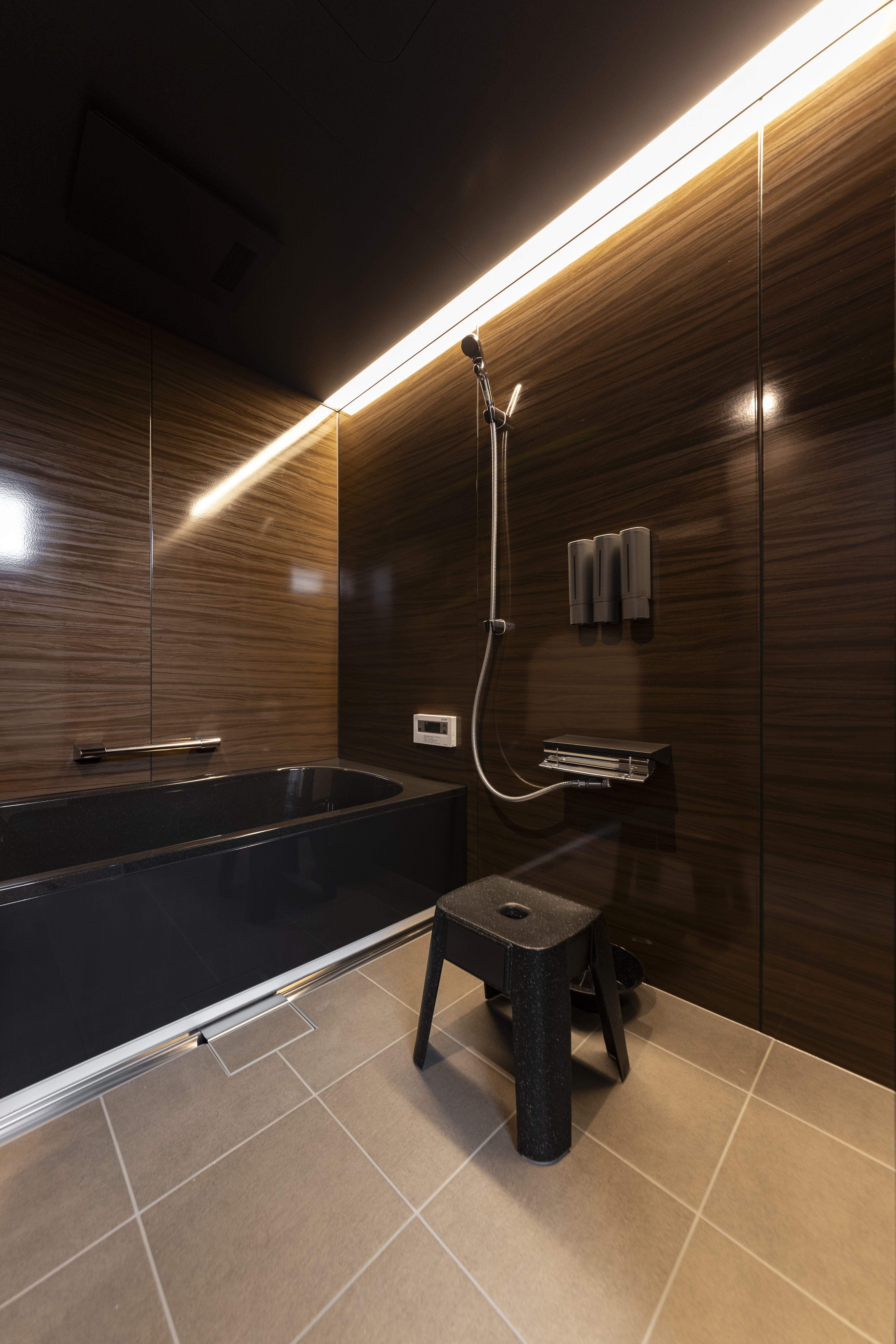 バスルーム:タカラスタンダード・リラクシアJ(浴室パネル:ウォルナット ミディアム 浴槽:シュガーブラック 洗い場:カームダークグレー)
