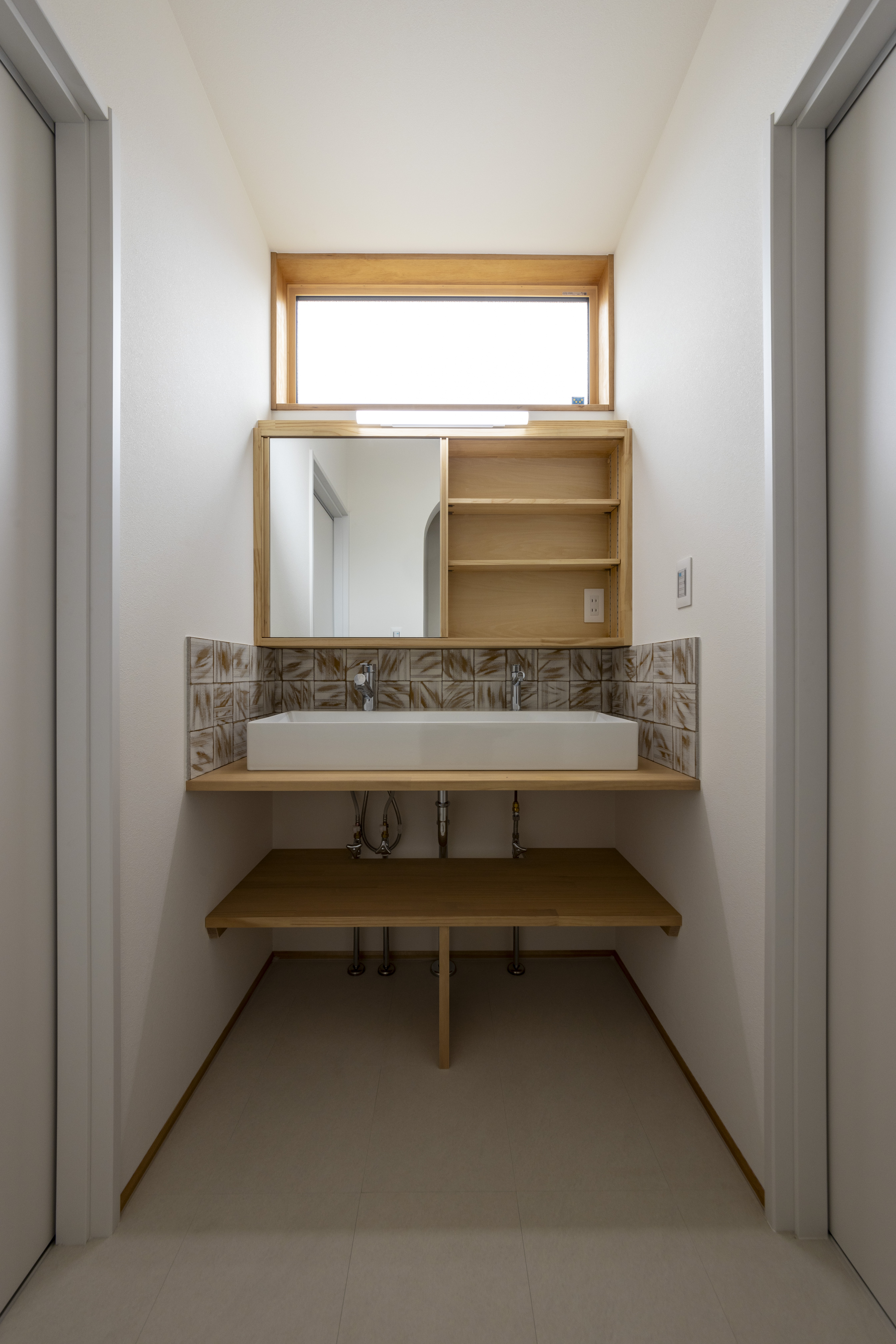 造作洗面台の洗面ボウル:サンワカンパニー エレガントダブル タイル:平田タオル SLM-W ソライン